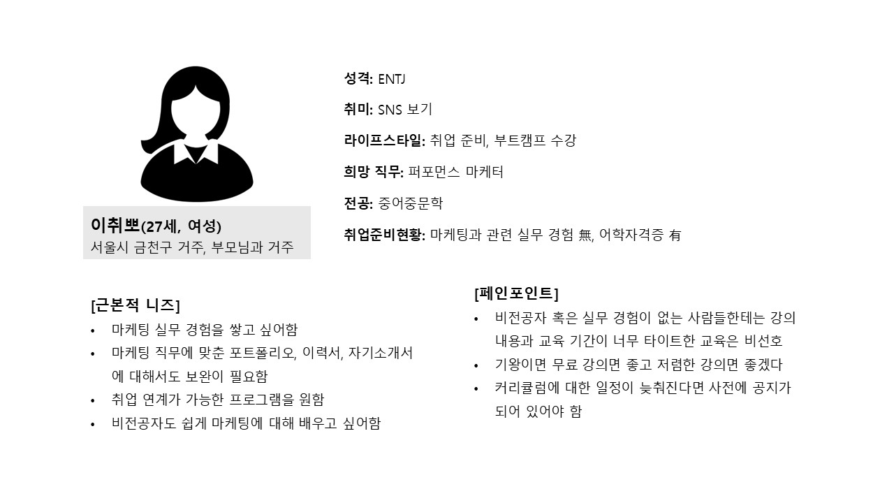 참가자 B) 대학 특성이 있어서 취업 지원 받기가 힘들고 마케팅은 실무 경험이 있어야 뽑히는데(이론만 가지고 취업 하기가 힘듦) 실무 경험을 쌓을 데가 없어서 실무 경험과 포트폴리오 만들기 위해 지원했다.